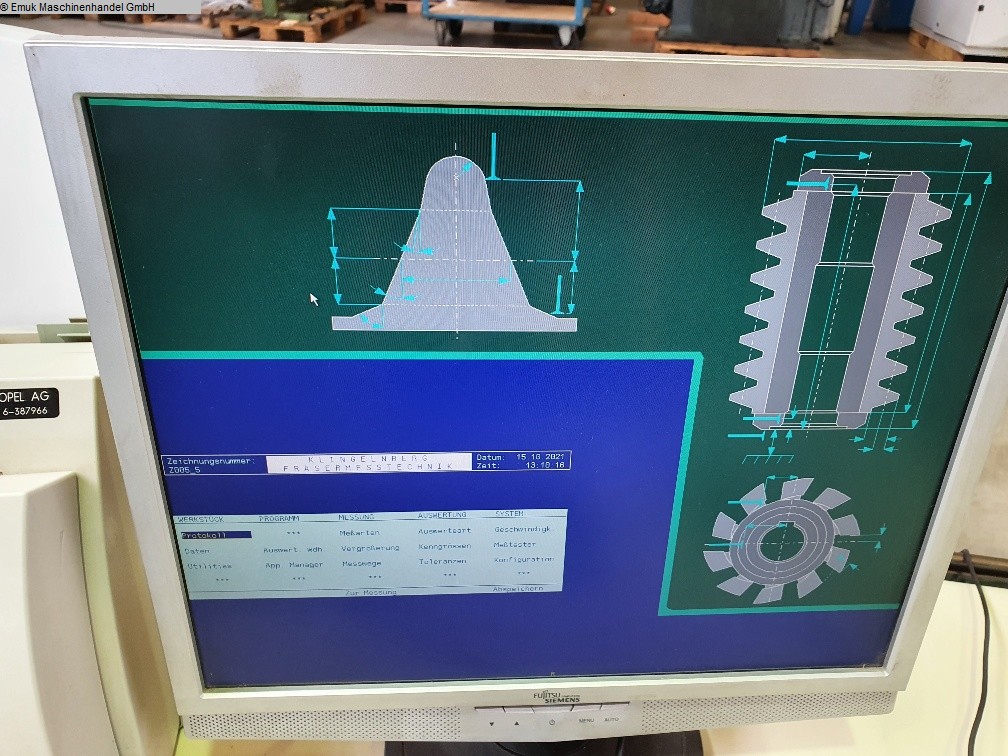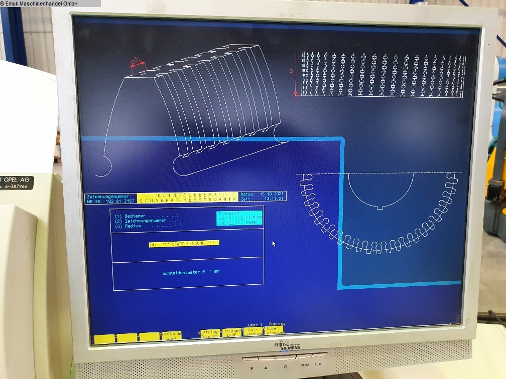 Sehr guter Zustand, unter Strom, vorführbereit! Software für Stirnräder (gerade, schräg), Wälzfräser, Schaberäder. |